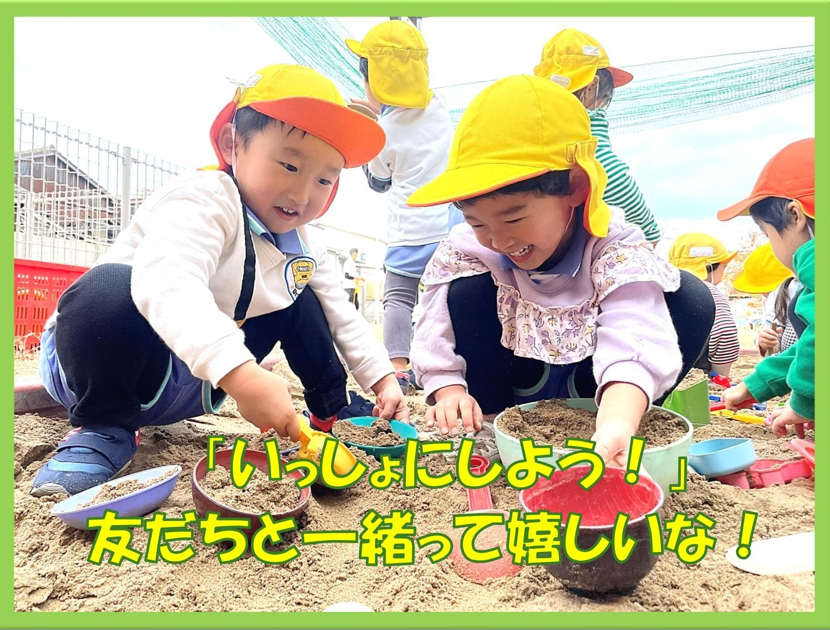 乳幼児期から遊び(生活)を通して、一人ひとりの違いを認め合い、喜びや悲しみを共感しあいながらともに育ち合う仲間関係の中で健康でたくましく生き生きとした子どもを育みます。